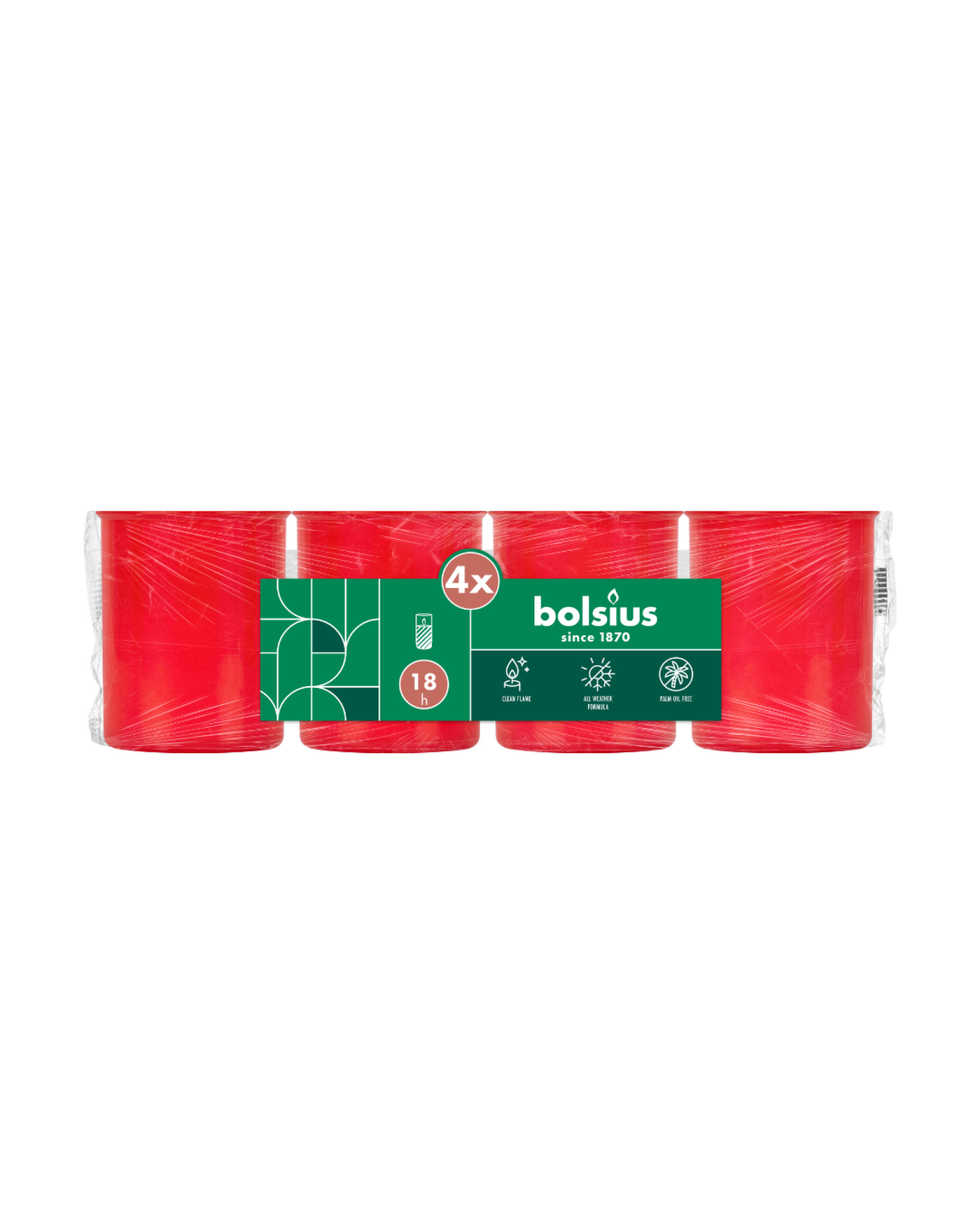 A Bolsius kis kiszerelésű paraffinos mécses betétjei praktikus, 4 darabos csomagban érkeznek. Egyenként kb. 18 órán át biztosítanak tiszta, megbízható égést. Ideális rövidebb megemlékezésekhez vagy kisebb mécsestartók újratöltésére.